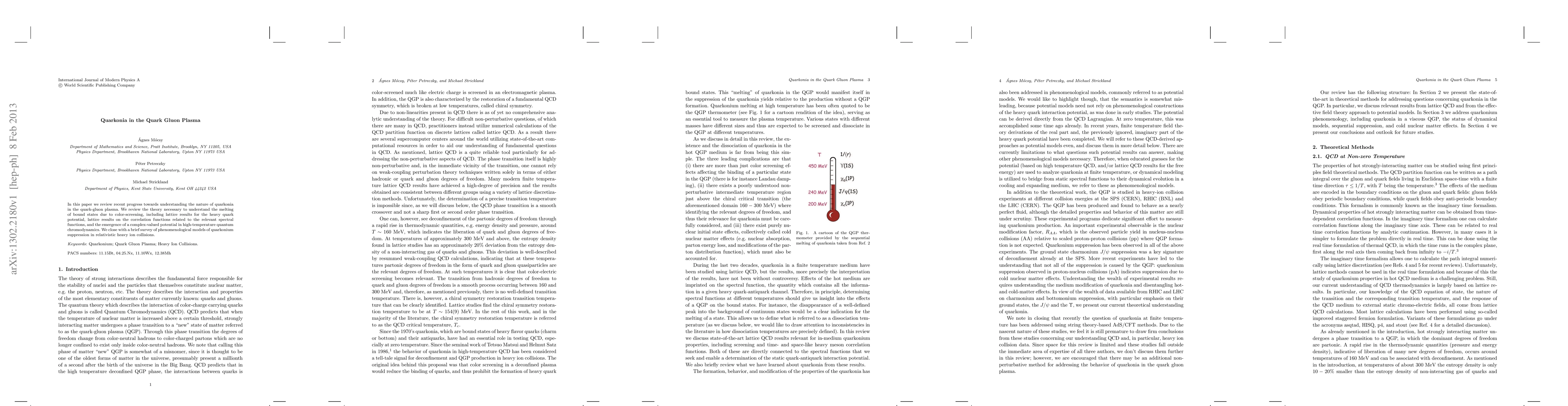 This paper reviews recent advancements in understanding quarkonia's behavior in quark-gluon plasma, focusing on the theory of bound state melting due to color-screening, supported by lattice QCD results and phenomenological models for quarkonium suppression in heavy ion collisions.