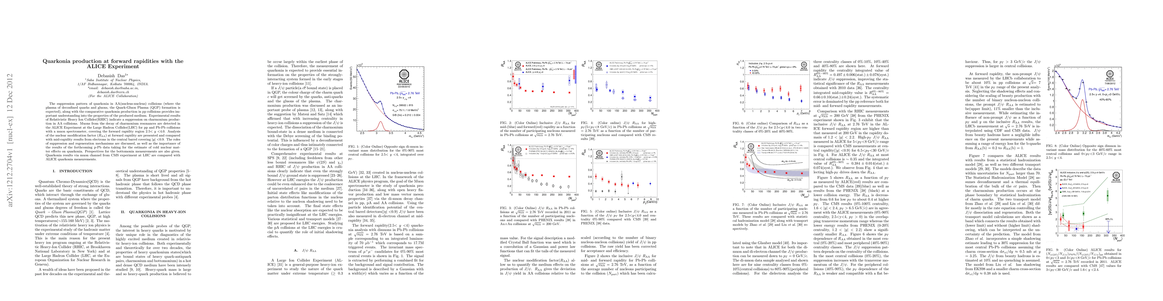 This paper investigates quarkonia production in forward rapidity using the ALICE detector at the LHC, comparing charmonium results from muons in pp and Pb-Pb collisions. It analyzes the nuclear modification factor and discusses suppression and regeneration mechanisms, emphasizing the significance of forthcoming p-Pb data for cold nuclear matter effects and prospects for bottomonia measurements.