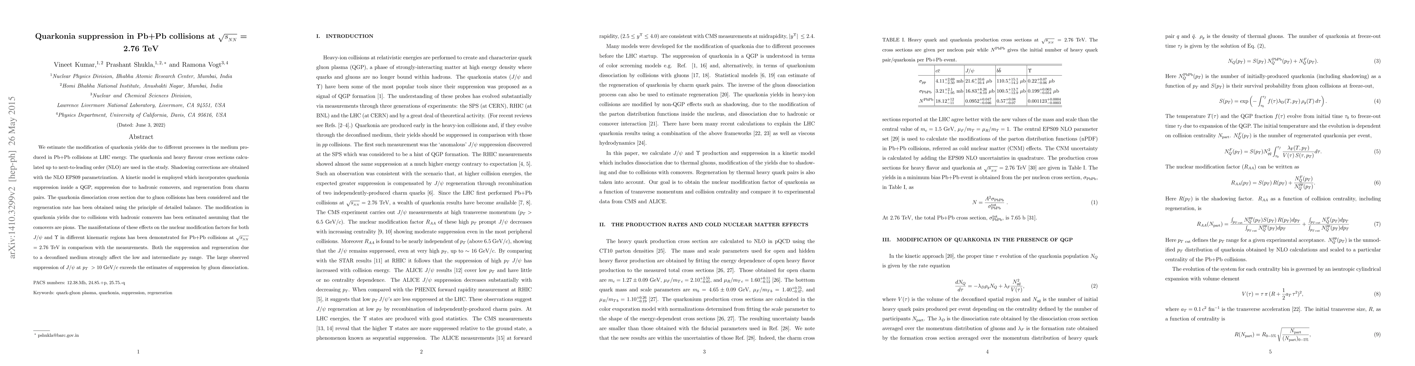 This study investigates quarkonia suppression in Pb+Pb collisions at 2.76 TeV, employing a kinetic model to account for dissociation in QGP, hadronic comovers, and regeneration from charm pairs. The results show significant suppression of $J/\psi$ at high transverse momentum, exceeding estimates from gluon dissociation alone.