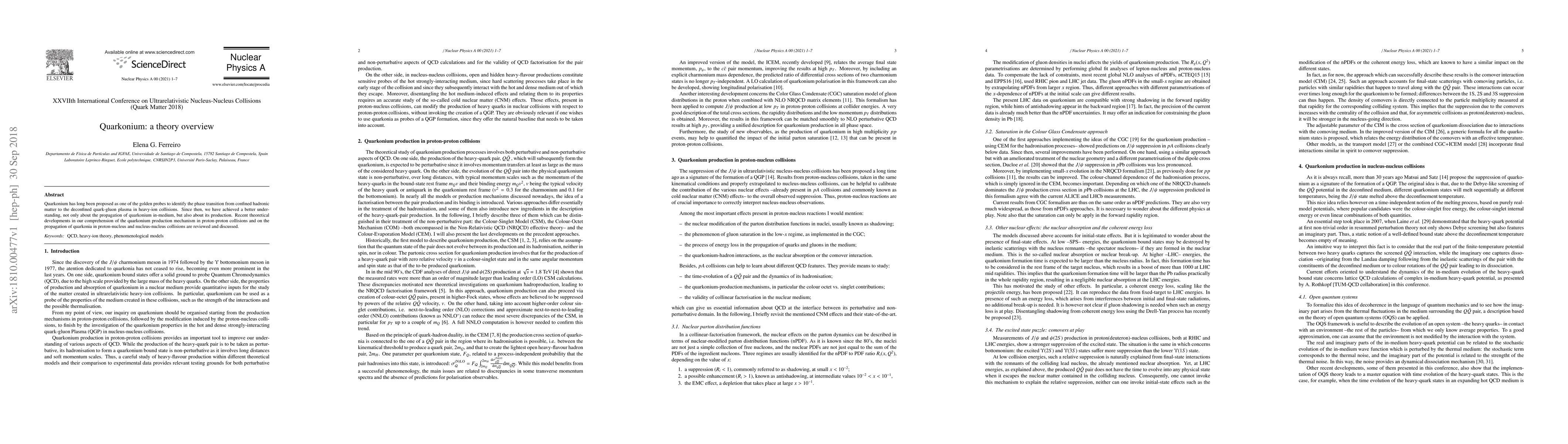 Researchers review recent developments in understanding quarkonium production and propagation in heavy-ion collisions, proton-proton collisions, and nucleus-nucleus collisions, shedding light on the phase transition between hadronic matter and quark-gluon plasma.