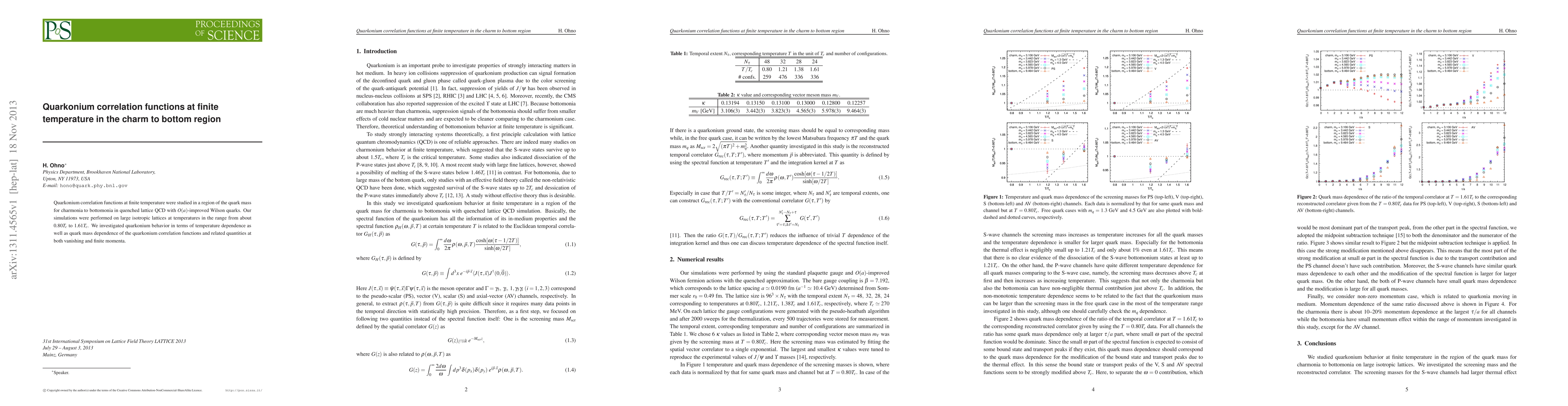 This study explores quarkonium correlation functions in the charm to bottom region using quenched lattice QCD simulations at temperatures ranging from 0.80$T_c$ to 1.61$T_c$. The research investigates the temperature and quark mass dependence of these functions, providing insights into their behavior at both zero and finite momenta.