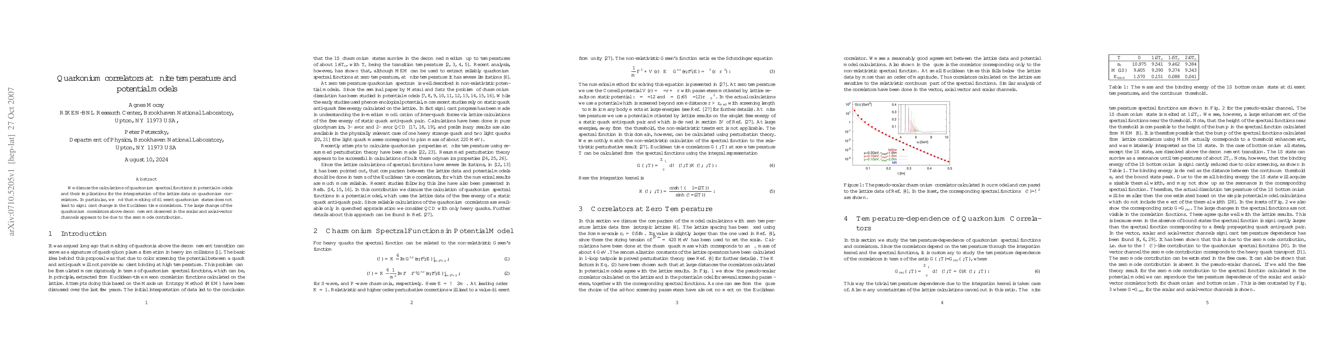 This paper investigates quarkonium spectral functions using potential models and finds that quarkonium state melting minimally affects Euclidean time correlators. The significant changes in correlators above deconfinement are primarily attributed to zero mode contributions.