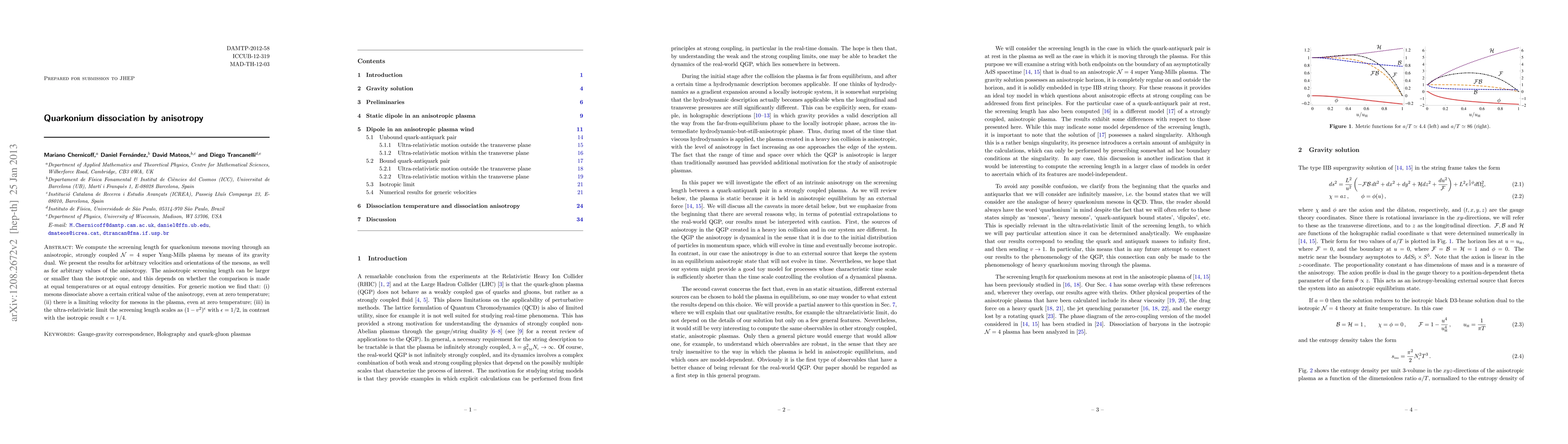 Research finds that quarkonium mesons dissociate from a plasma under certain conditions of anisotropy, with the dissociation threshold depending on velocity and orientation, and implications for understanding strong nuclear physics.