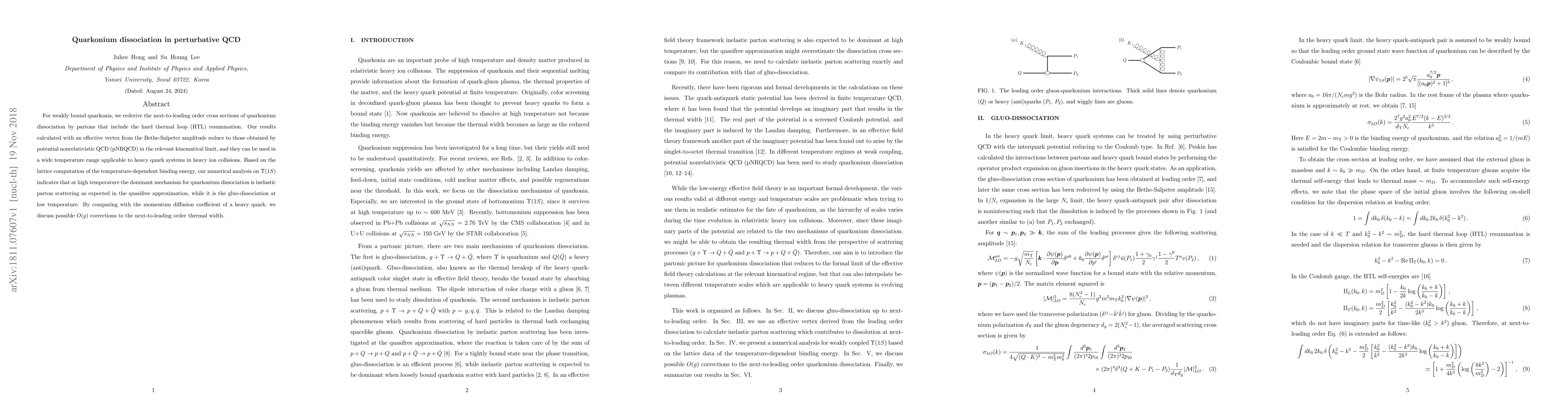 This paper rederives next-to-leading order cross sections for quarkonium dissociation in weakly bound systems, incorporating hard thermal loop resummation and effective vertices. The results align with potential nonrelativistic QCD and are applicable across a wide temperature range relevant to heavy ion collisions, showing that inelastic parton scattering dominates at high temperatures while gluo-dissociation is significant at low temperatures.
