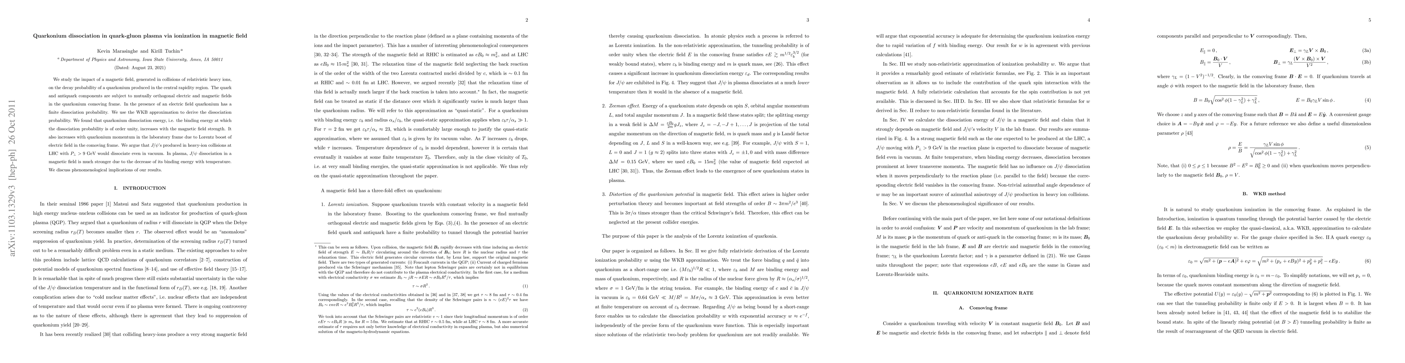 This paper investigates how magnetic fields from relativistic heavy-ion collisions impact quarkonium dissociation, finding that dissociation probability increases with magnetic field strength and quarkonium momentum. J/Psi dissociation occurs at lower temperatures in plasma due to reduced binding energy.