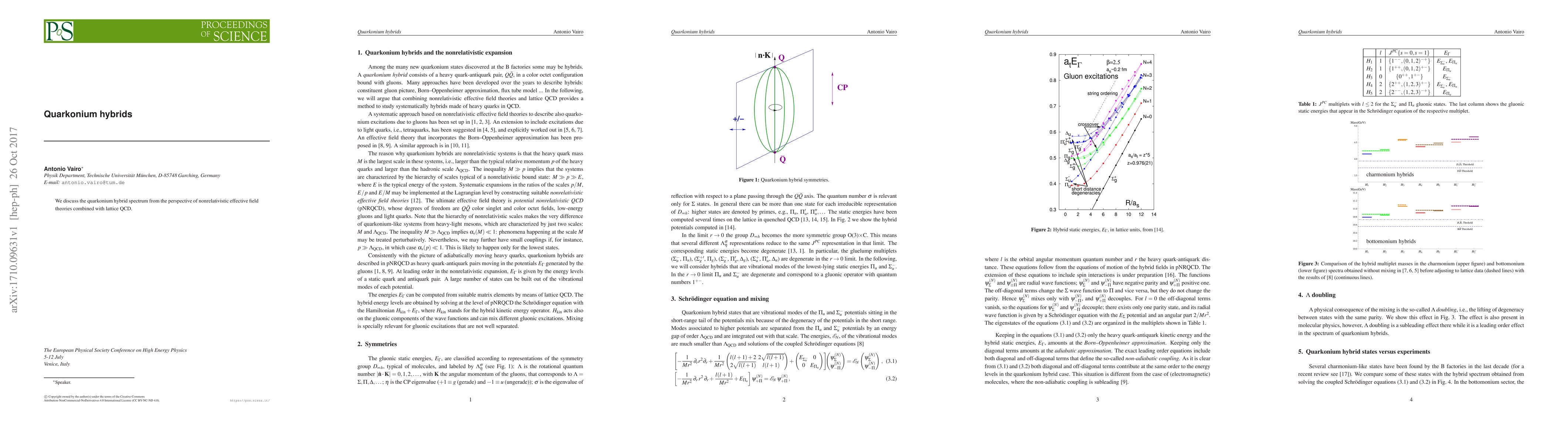 We discuss the quarkonium hybrid spectrum from the perspective of nonrelativistic effective field theories combined with lattice QCD.
