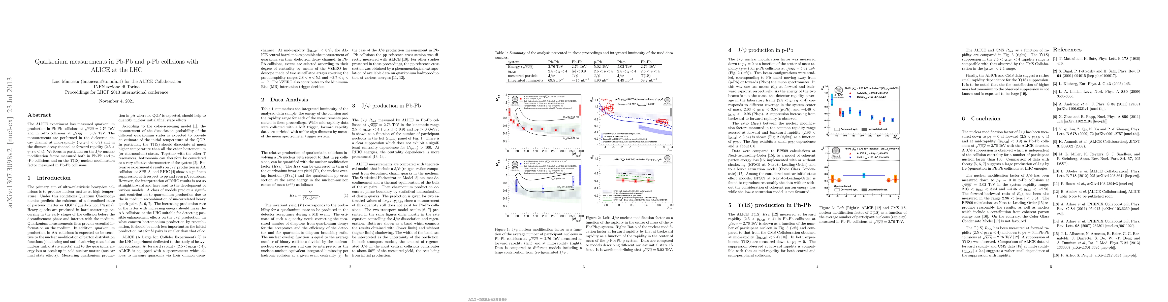 The ALICE experiment measured quarkonium production in Pb-Pb and p-Pb collisions at the LHC, focusing on the J/ψ and Υ(1S) nuclear modification factors in various decay channels. These results provide insights into the effects of nuclear environment on quarkonium states.
