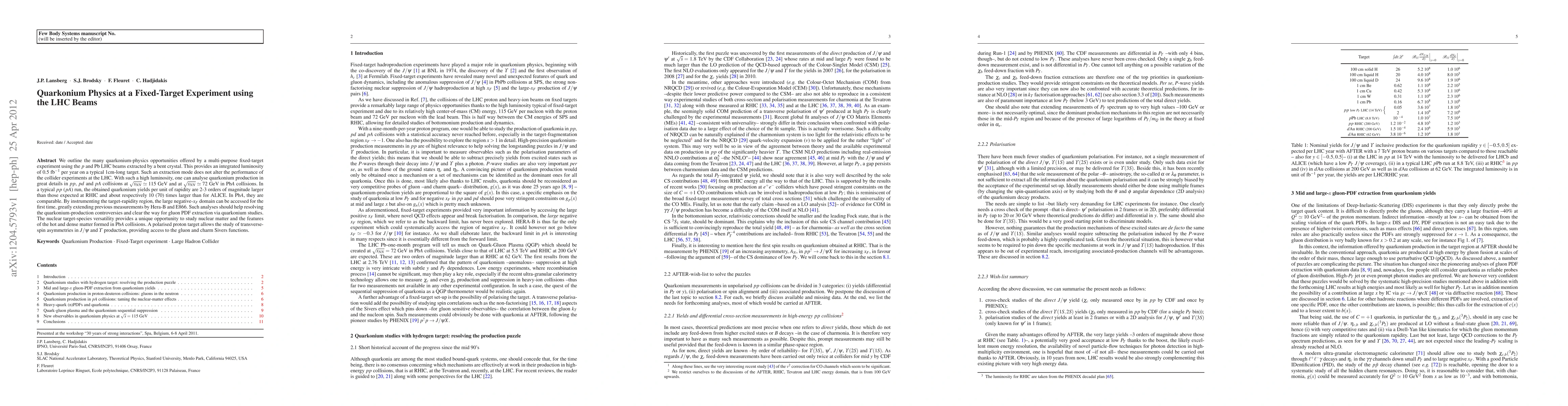 This paper explores the potential of a fixed-target experiment using LHC beams to study quarkonium physics, offering high luminosity and detailed analysis of quarkonium production in various collision types. It highlights the significant increase in quarkonium yields compared to existing experiments, enabling new measurements in the large negative-xF domain and providing insights into nuclear matter and spin asymmetries.