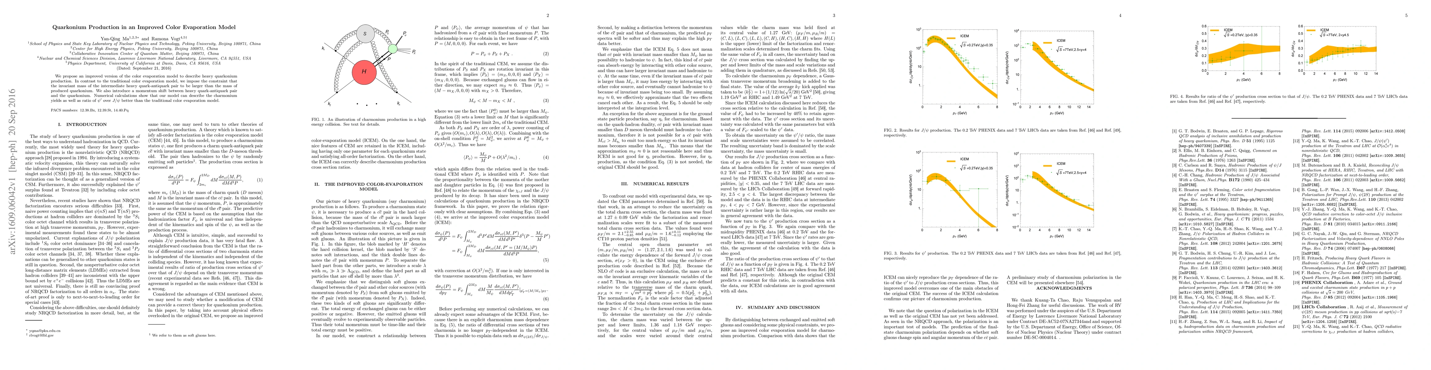 This paper proposes an enhanced color evaporation model for quarkonium production, imposing a constraint on the intermediate quark-antiquark pair's invariant mass and introducing a momentum shift. The improved model better describes charmonium yields and the ratio of $\psi^\prime$ to $J/\psi$ compared to the traditional model.