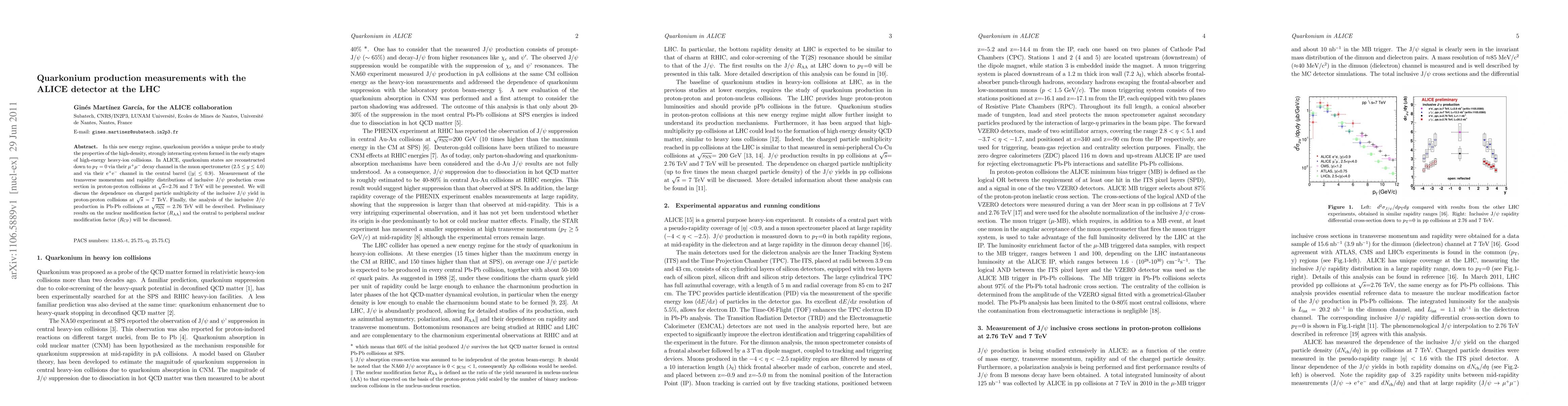 The ALICE detector measured quarkonium production in proton-proton collisions and heavy-ion collisions to study the properties of high-density systems.