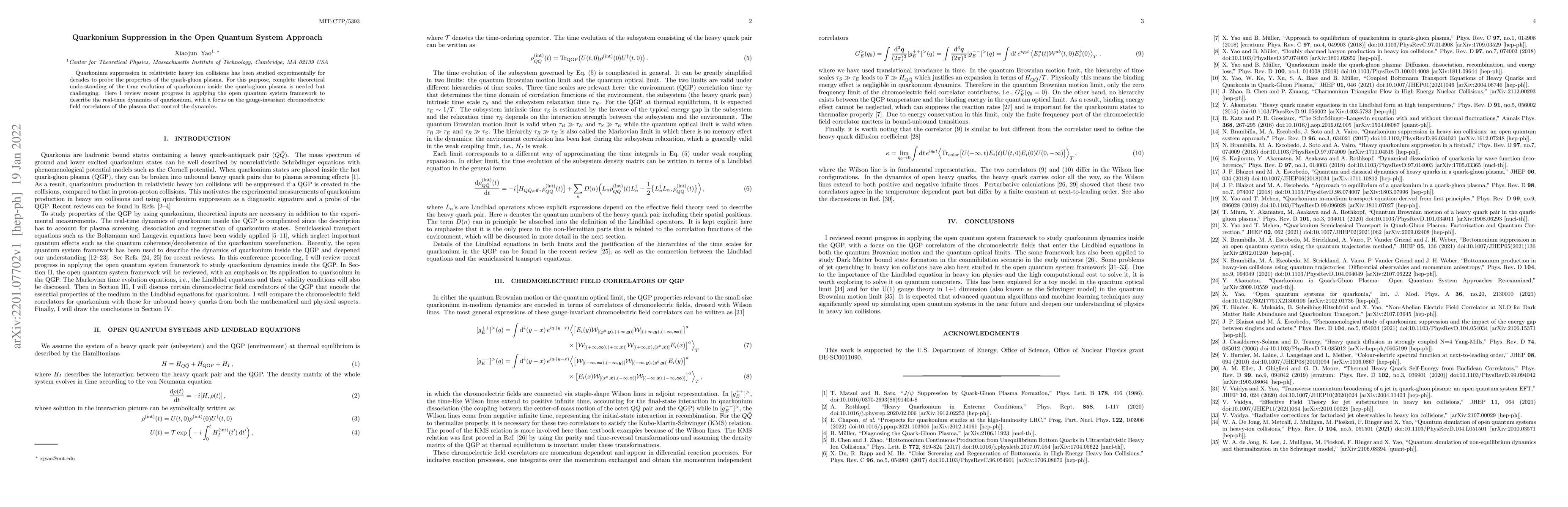 Quarkonium suppression in relativistic heavy ion collisions has been studied experimentally for decades to probe the properties of the quark-gluon plasma. For this purpose, complete theoretical understanding of the time evolution of quarkonium inside the quark-gluon plasma is needed but challenging. Here I review recent progress in applying the open quantum system framework to describe the real-time dynamics of quarkonium, with a focus on the gauge-invariant chromoelectric field correlators of the plasma that control the dynamics.