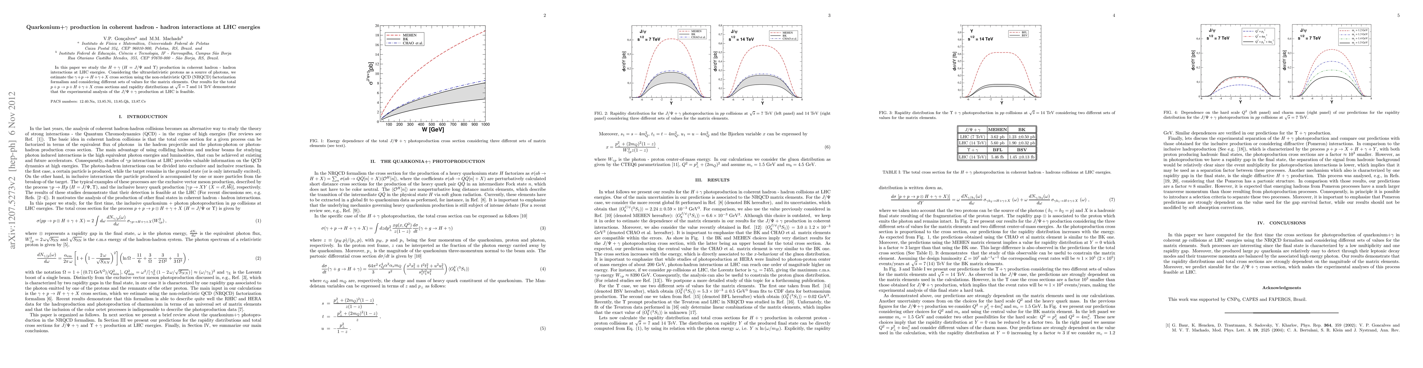 This paper investigates $J/\Psi$ and $\Upsilon$ production alongside photons in coherent hadron-hadron interactions at LHC energies, estimating the $\gamma + p \rightarrow H + \gamma + X$ cross section using non-relativistic QCD. The study concludes that the experimental analysis of $J/\Psi + \gamma$ production at LHC is feasible.