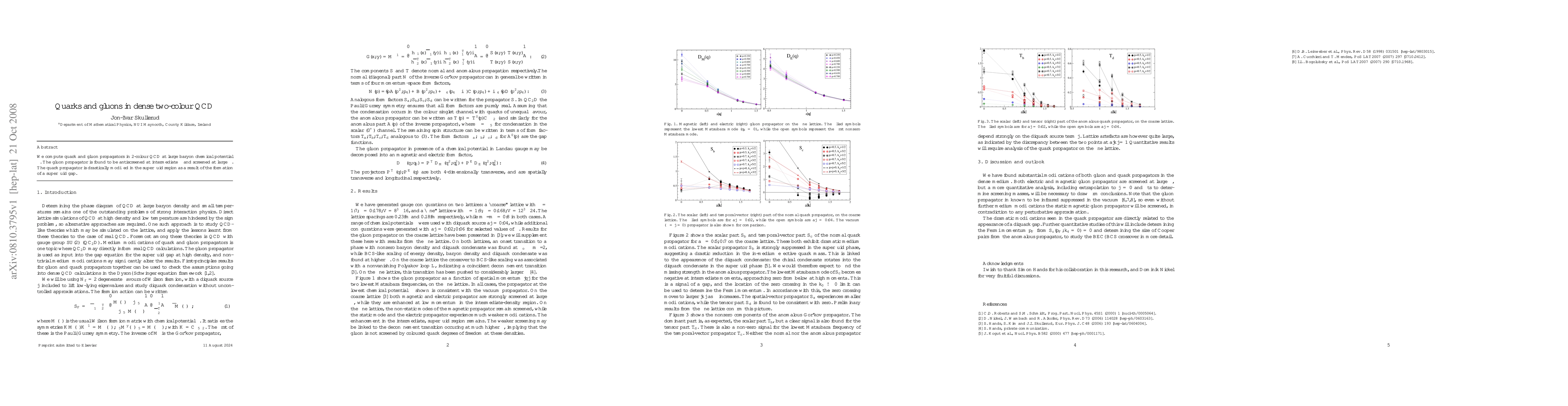 We compute quark and gluon propagators in 2-colour QCD at large baryon chemical potential mu. The gluon propagator is found to be antiscreened at intermediate mu and screened at large mu. The quark propagator is drastically modified in the superfluid region as a result of the formation of a superfluid gap.