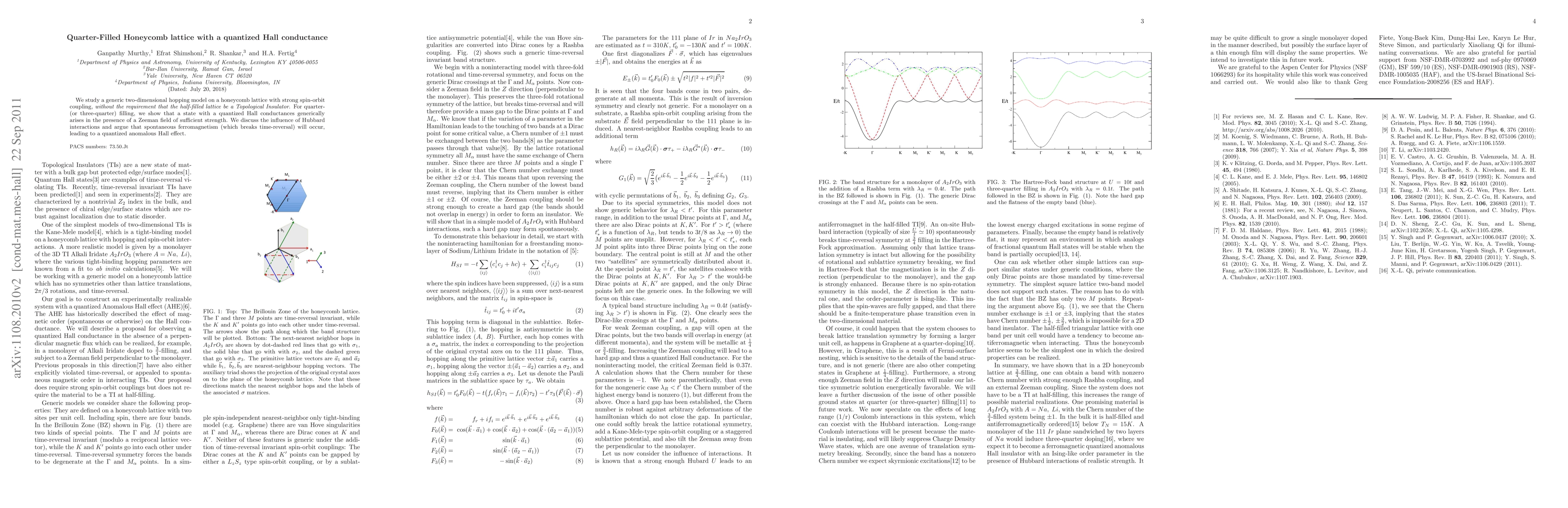 We study a generic two-dimensional hopping model on a honeycomb lattice with strong spin-orbit coupling, without the requirement that the half-filled lattice be a Topological Insulator. For quarter-(or three-quarter) filling, we show that a state with a quantized Hall conductance generically arises in the presence of a Zeeman field of sufficient strength. We discuss the influence of Hubbard interactions and argue that spontaneous ferromagnetism (which breaks time-reversal) will occur, leading to a quantized anomalous Hall effect.