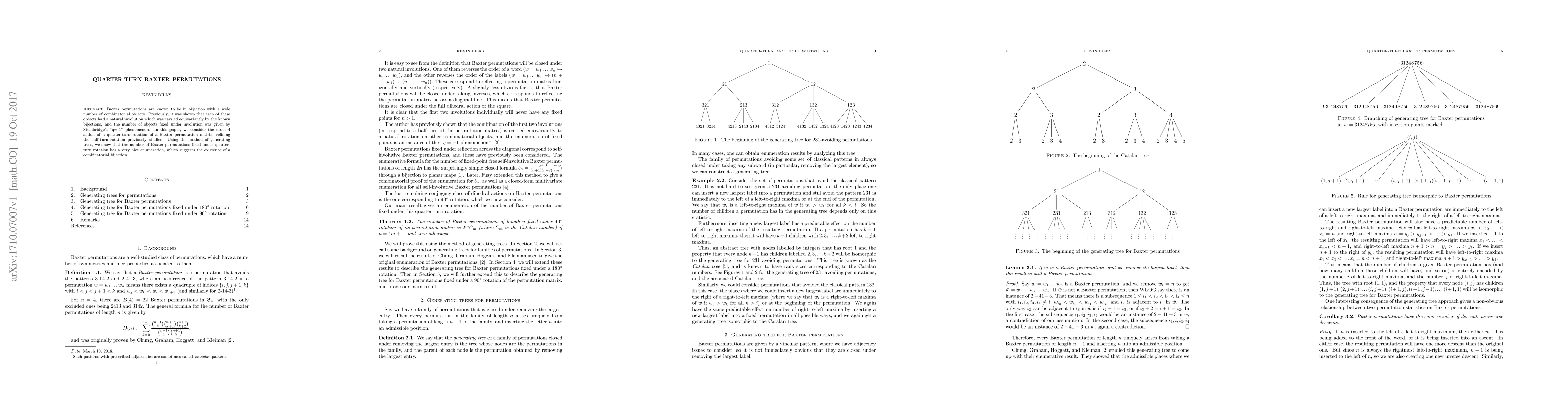 Researchers refine the study of Baxter permutations under quarter-turn rotation, finding a nice enumeration that suggests the existence of a combinatorial bijection.