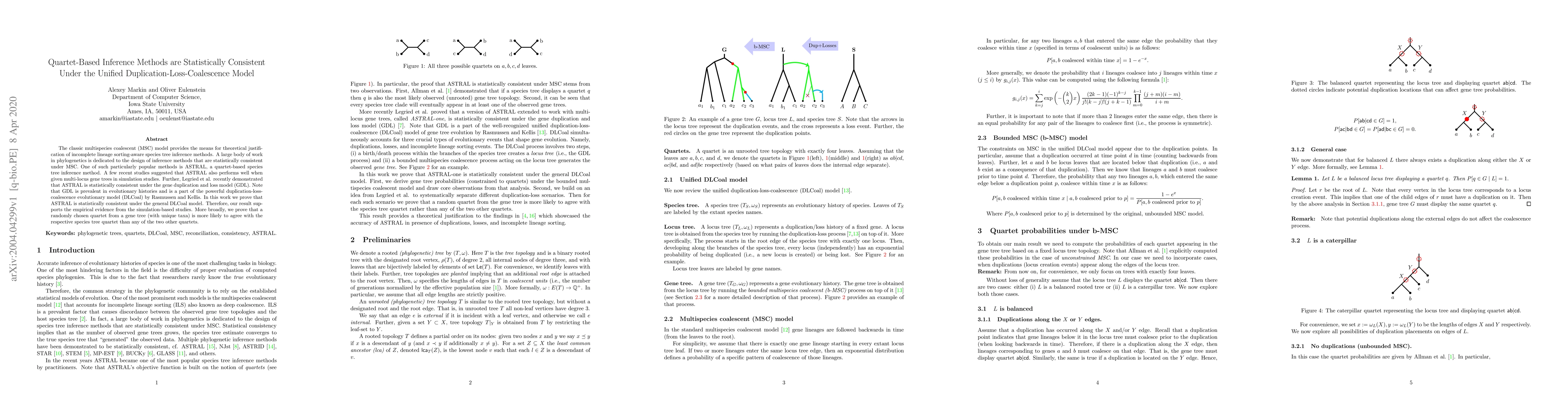 This paper proves that ASTRAL, a quartet-based species tree inference method, is statistically consistent under the unified duplication-loss-coalescence (DLCoal) model, supporting its empirical success in simulation studies and extending its theoretical justification beyond the gene duplication and loss model.