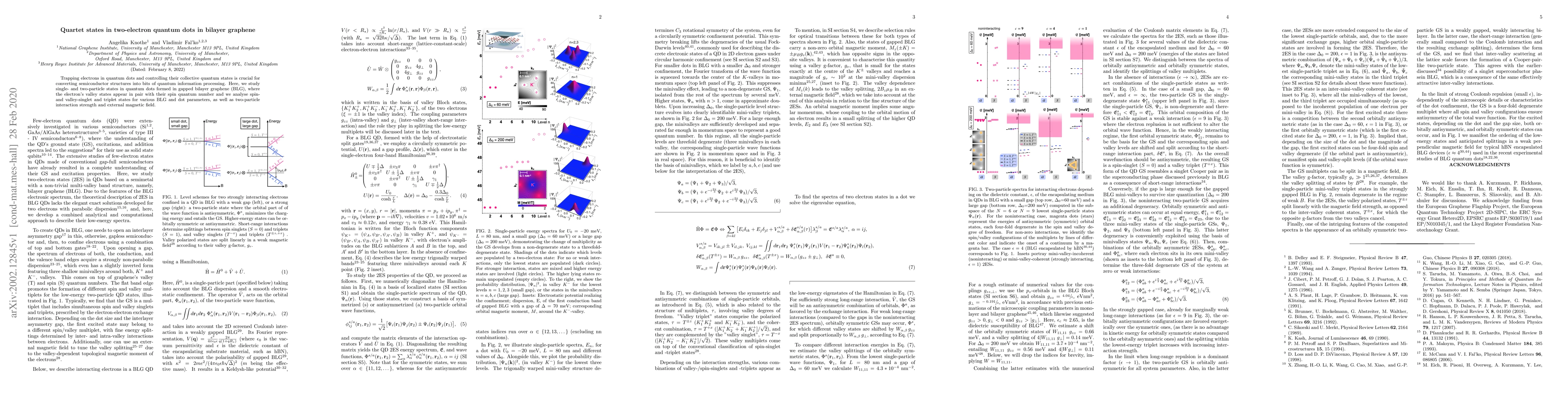 This research investigates quantum states in bilayer graphene quantum dots, focusing on single- and two-electron states, particularly spin- and valley-singlet and triplet states, under varying conditions including magnetic fields and interaction strengths. The study aims to enhance quantum information processing capabilities in semiconductor structures.