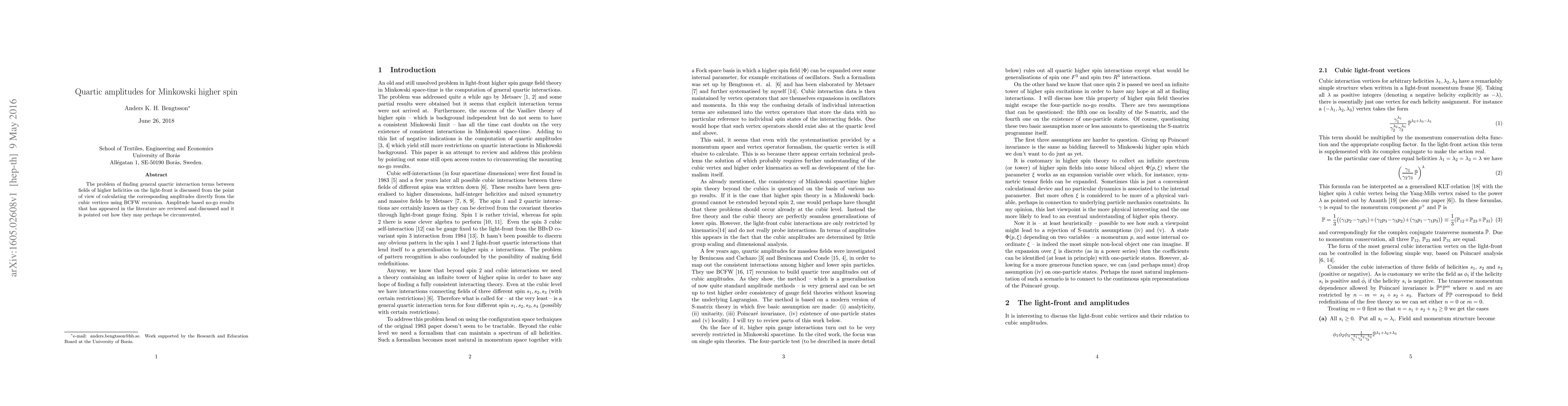 The problem of finding general quartic interaction terms between fields of higher helicities on the light-front is discussed from the point of view of calculating the corresponding amplitudes directly from the cubic vertices using BCFW recursion. Amplitude based no-go results that has appeared in the literature are reviewed and discussed and it is pointed out how they may perhaps be circumvented.