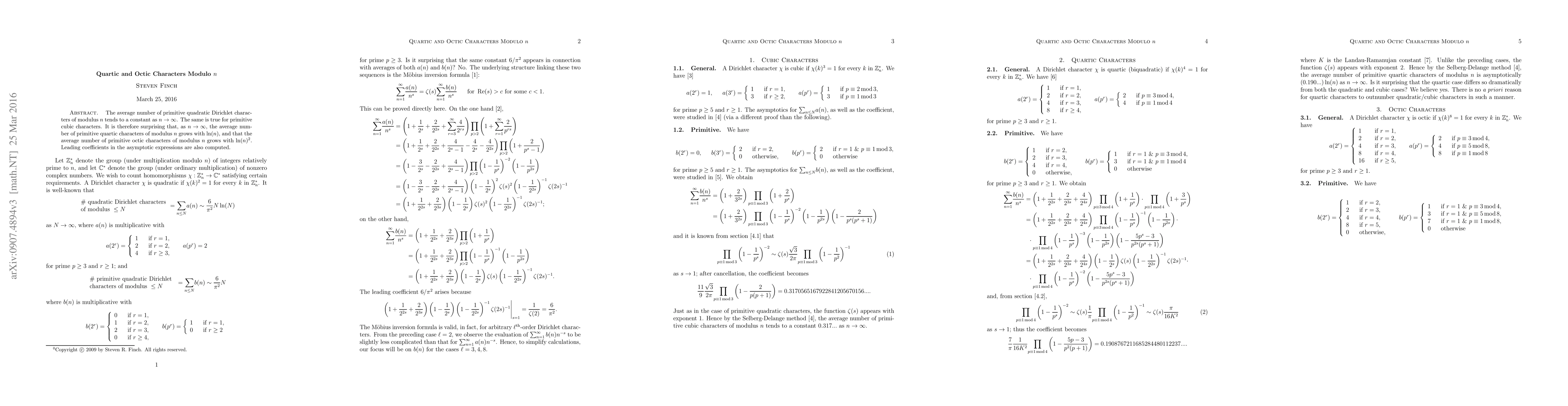 The average number of primitive quadratic Dirichlet characters of modulus n tends to a constant as n->infty. The same is true for primitive cubic characters. It is therefore surprising that, as n->infty, the average number of primitive quartic characters of modulus n grows with ln(n), and that the average number of primitive octic characters of modulus n grows with ln(n)^2. Leading coefficients in the asymptotic expressions are also computed.