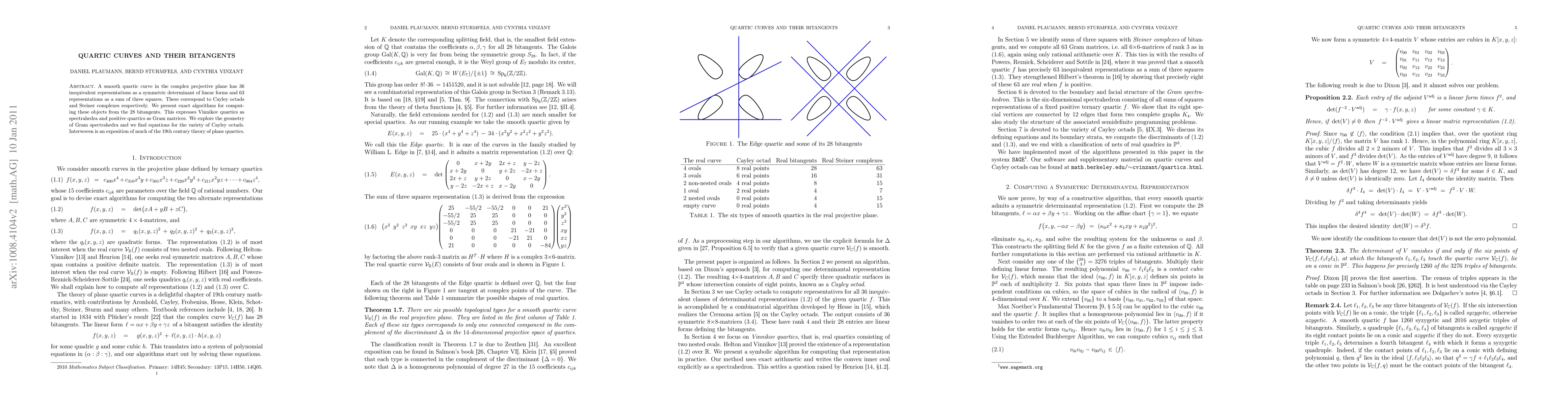 A smooth quartic curve in the complex projective plane has 36 inequivalent representations as a symmetric determinant of linear forms and 63 representations as a sum of three squares. These correspond to Cayley octads and Steiner complexes respectively. We present exact algorithms for computing these objects from the 28 bitangents. This expresses Vinnikov quartics as spectrahedra and positive quartics as Gram matrices. We explore the geometry of Gram spectrahedra and we find equations for the variety of Cayley octads. Interwoven is an exposition of much of the 19th century theory of plane quartics.