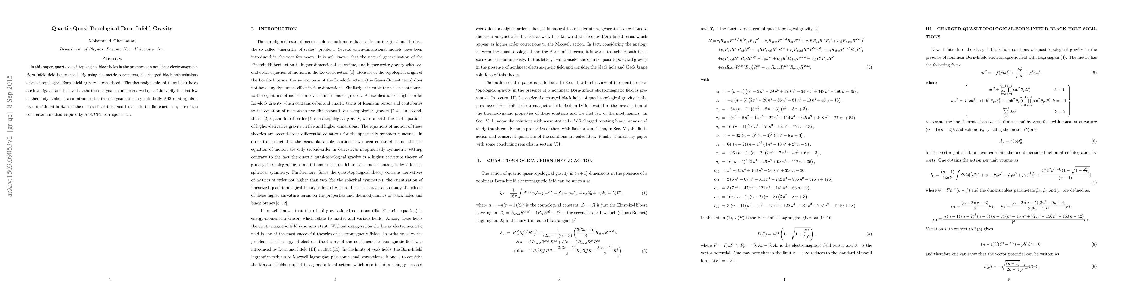 The research introduces quartic quasi-topological Born-Infeld gravity, computing charged black hole solutions in the presence of a nonlinear electromagnetic Born-Infeld field. It uses specific metric parameters and Lagrangian to derive the one-dimensional action, then varies it to find the vector potential and metric functions.
