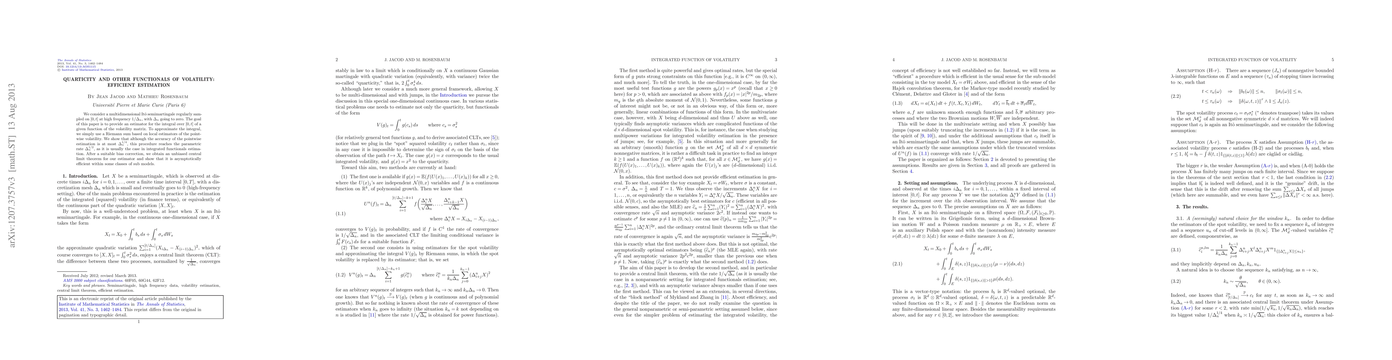 We consider a multidimensional Ito semimartingale regularly sampled on [0,t] at high frequency $1/\Delta_n$, with $\Delta_n$ going to zero. The goal of this paper is to provide an estimator for the integral over [0,t] of a given function of the volatility matrix. To approximate the integral, we simply use a Riemann sum based on local estimators of the pointwise volatility. We show that although the accuracy of the pointwise estimation is at most $\Delta_n^{1/4}$, this procedure reaches the parametric rate $\Delta_n^{1/2}$, as it is usually the case in integrated functionals estimation. After a suitable bias correction, we obtain an unbiased central limit theorem for our estimator and show that it is asymptotically efficient within some classes of sub models.