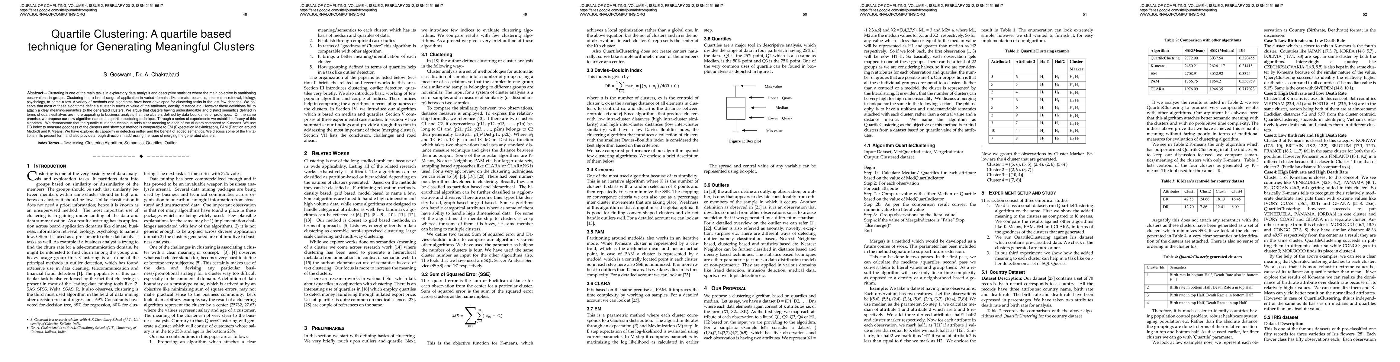 Clustering is one of the main tasks in exploratory data analysis and descriptive statistics where the main objective is partitioning observations in groups. Clustering has a broad range of application in varied domains like climate, business, information retrieval, biology, psychology, to name a few. A variety of methods and algorithms have been developed for clustering tasks in the last few decades. We observe that most of these algorithms define a cluster in terms of value of the attributes, density, distance etc. However these definitions fail to attach a clear meaning/semantics to the generated clusters. We argue that clusters having understandable and distinct semantics defined in terms of quartiles/halves are more appealing to business analysts than the clusters defined by data boundaries or prototypes. On the samepremise, we propose our new algorithm named as quartile clustering technique. Through a series of experiments we establish efficacy of this algorithm. We demonstrate that the quartile clustering technique adds clear meaning to each of the clusters compared to K-means. We use DB Index to measure goodness of the clusters and show our method is comparable to EM (Expectation Maximization), PAM (Partition around Medoid) and K Means. We have explored its capability in detecting outlier and the benefit of added semantics. We discuss some of the limitations in its present form and also provide a rough direction in addressing the issue of merging the generated clusters.