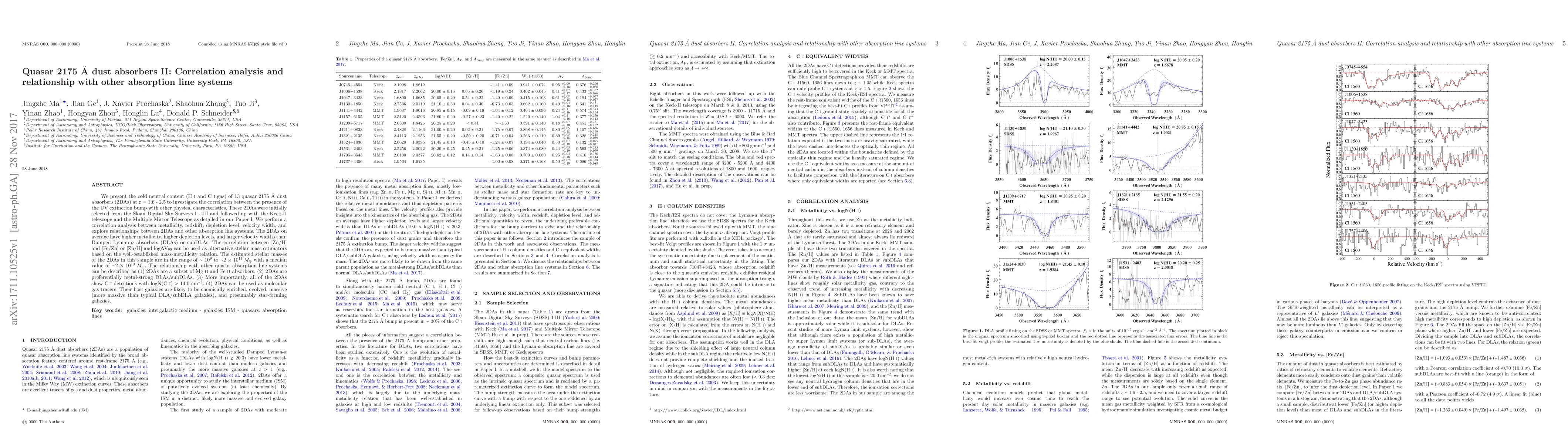 We present the cold neutral content (H I and C I gas) of 13 quasar 2175 \AA$ $ dust absorbers (2DAs) at $z$ = 1.6 - 2.5 to investigate the correlation between the presence of the UV extinction bump with other physical characteristics. These 2DAs were initially selected from the Sloan Digital Sky Surveys I - III and followed up with the Keck-II telescope and the Multiple Mirror Telescope as detailed in our Paper I. We perform a correlation analysis between metallicity, redshift, depletion level, velocity width, and explore relationships between 2DAs and other absorption line systems. The 2DAs on average have higher metallicity, higher depletion levels, and larger velocity widths than Damped Lyman-$\alpha$ absorbers (DLAs) or subDLAs. The correlation between [Zn/H] and [Fe/Zn] or [Zn/H] and log$\Delta$V$_{90}$ can be used as alternative stellar mass estimators based on the well-established mass-metallicity relation. The estimated stellar masses of the 2DAs in this sample are in the range of $\sim$ 10$^9$ to $\sim$2 $\times$ 10$^{11}$ $M_{\odot}$ with a median value of $\sim$2 $\times$ 10$^{10}$ $M_{\odot}$. The relationship with other quasar absorption line systems can be described as (1) 2DAs are a subset of Mg II and Fe II absorbers, (2) 2DAs are preferentially metal-strong DLAs/subDLAs, (3) More importantly, all of the 2DAs show C I detections with logN(C I) $>$ 14.0 cm$^{-2}$, (4) 2DAs can be used as molecular gas tracers. Their host galaxies are likely to be chemically enriched, evolved, massive (more massive than typical DLA/subDLA galaxies), and presumably star-forming galaxies.