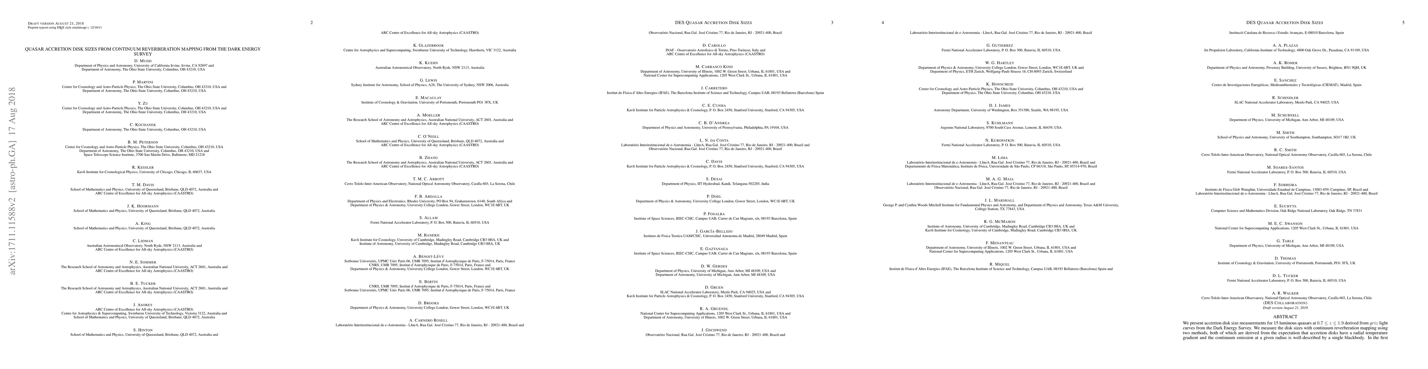 This paper measures accretion disk sizes for 15 quasars using continuum reverberation mapping from Dark Energy Survey data. The results show agreement with theoretical models for accretion rates near Eddington, though uncertainties allow for consistency with larger disk sizes observed in other studies.