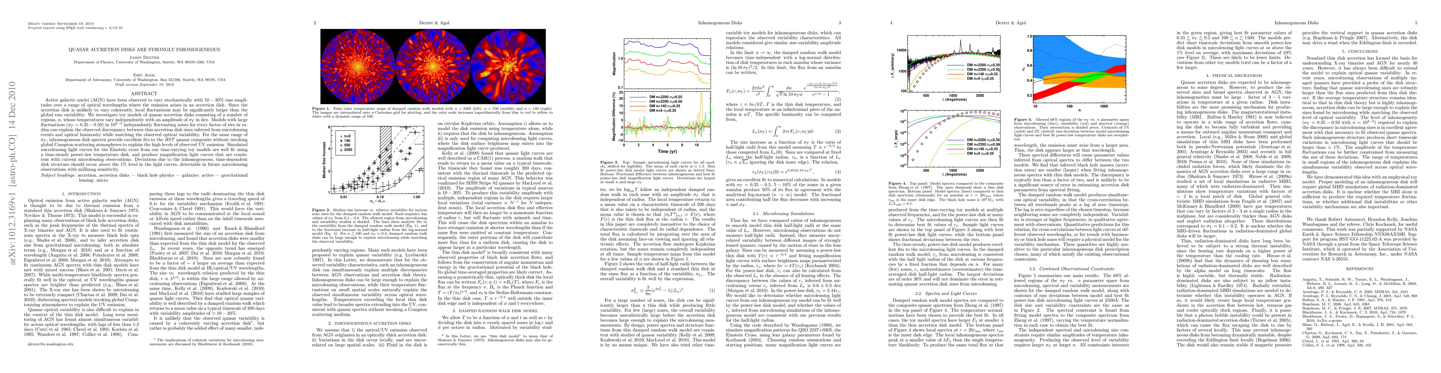 This paper investigates the inhomogeneity of quasar accretion disks, finding that large local fluctuations can explain observed optical variability and discrepancies in disk size inferred from microlensing. Models with significant temperature fluctuations in independently varying zones match observed UV emission and microlensing light curves.
