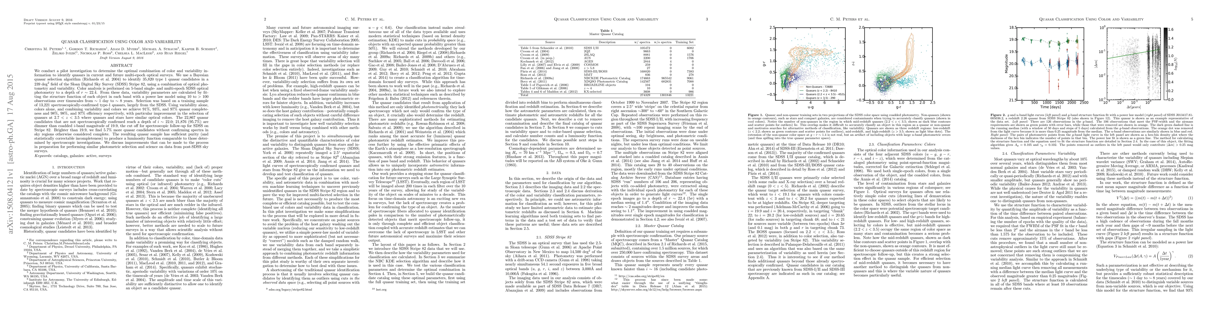 quasars, largely from the SDSS. Using variability alone, colors alone, and