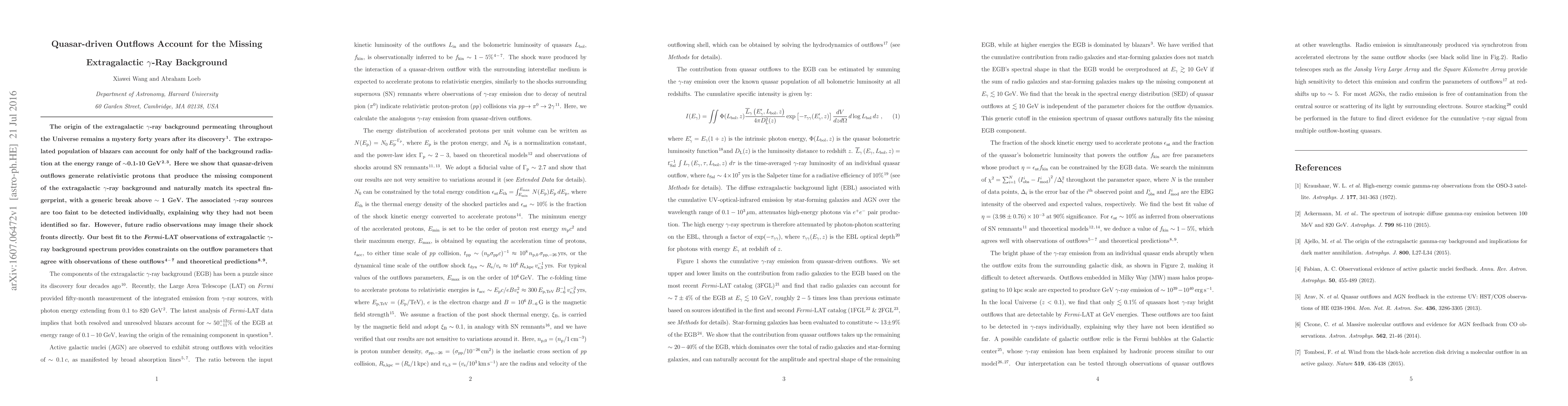 This paper proposes that quasar-driven outflows are responsible for the missing component of the extragalactic gamma-ray background, filling the gap left by blazars. Future radio observations may reveal the shock fronts of these outflows, aligning with current Fermi-LAT observations.