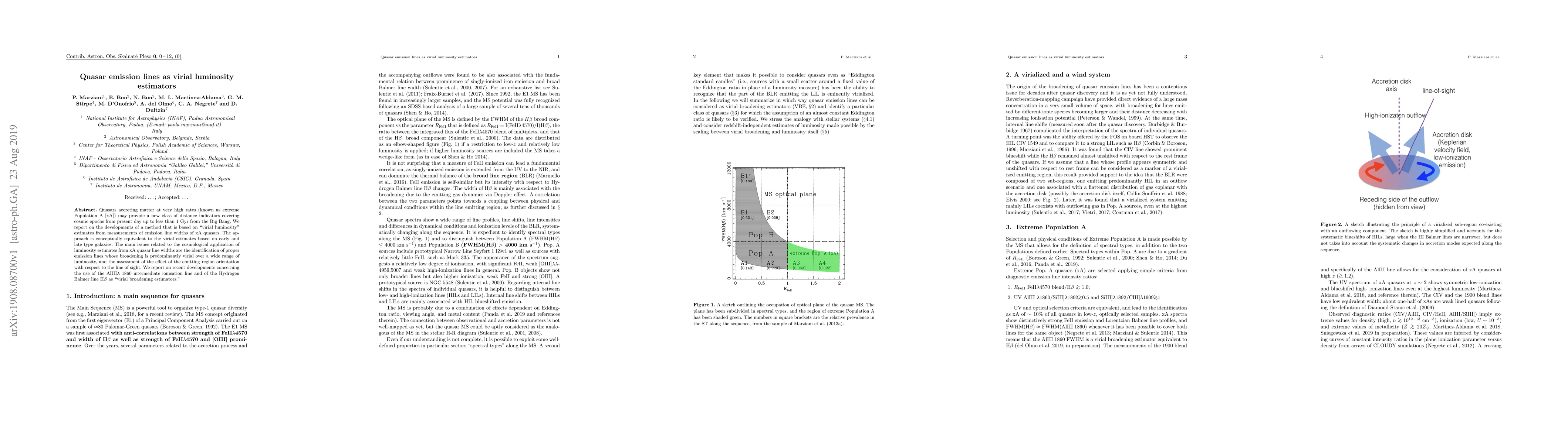 Researchers propose using quasar emission lines to estimate distance across cosmic epochs, focusing on virial luminosity estimates from broadening of specific lines.