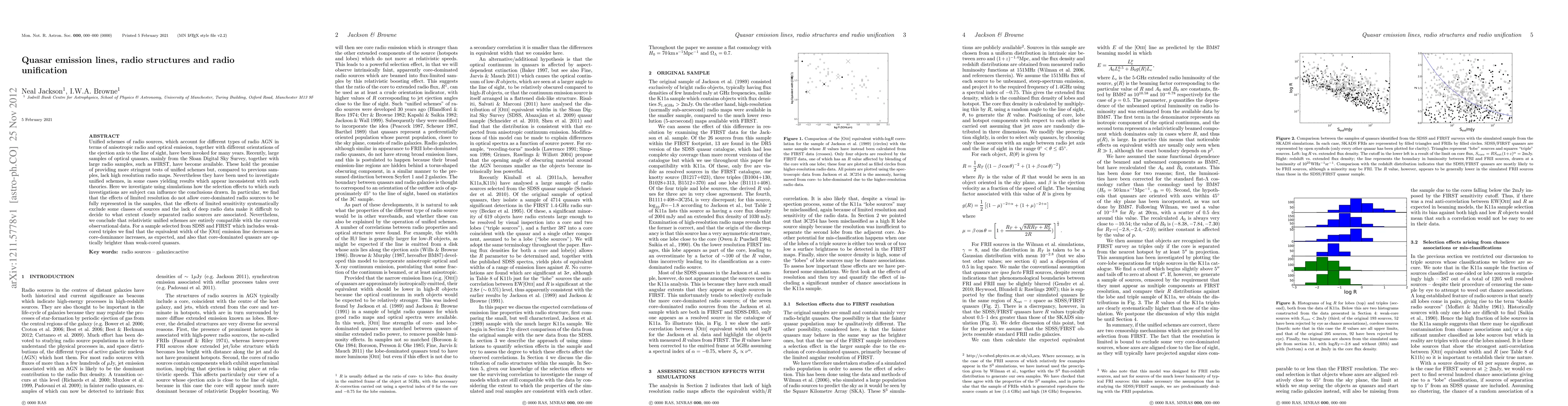 This paper examines unified schemes for radio-emitting active galactic nuclei (AGN) using large quasar and radio samples, highlighting selection effects due to limited resolution and sensitivity. The study concludes that despite these limitations, relativistic unified models remain consistent with current data, noting a correlation between core-dominance and optical brightness in quasars.