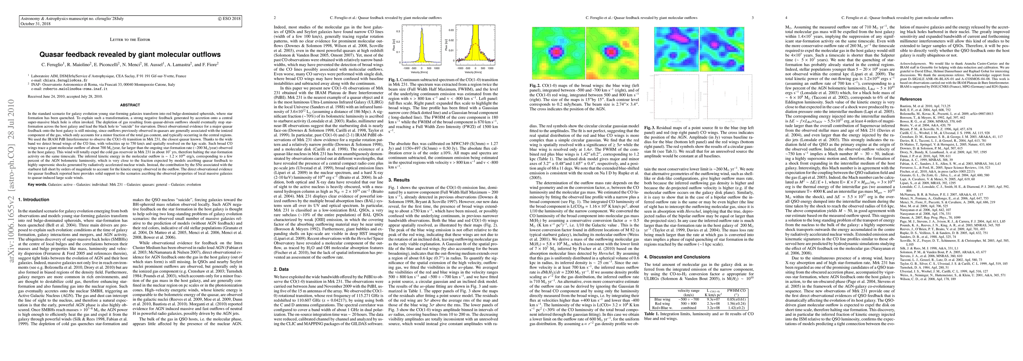 This paper presents direct observational evidence for quasar feedback in the galaxy Mrk 231, revealing giant molecular outflows driven by the quasar. The outflows, traced by broad CO wings, are large enough to expel the cold gas reservoir, halting star formation in the galaxy over a million years.