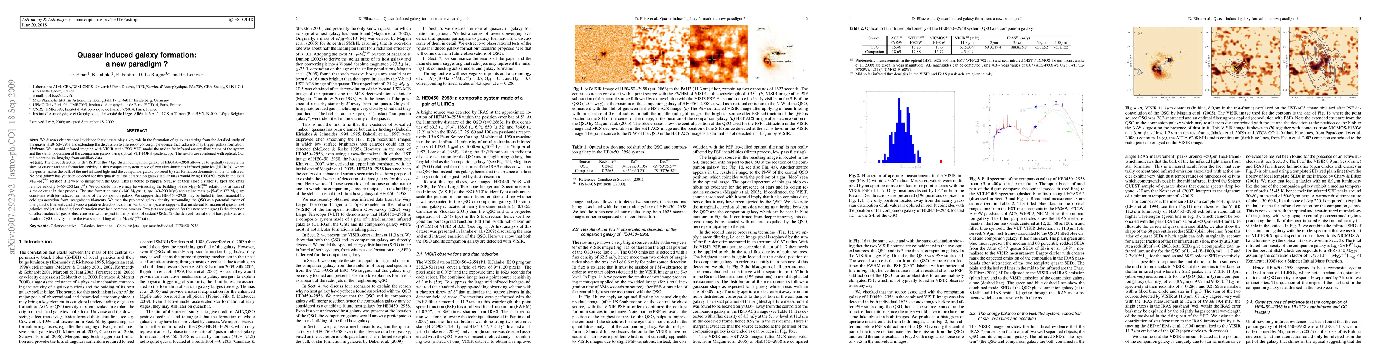 This paper presents evidence that quasars, particularly HE0450-2958, may play a crucial role in triggering galaxy formation through radio jets, suggesting a new paradigm for galaxy development. The study proposes that quasar activity could lead to the inside-out formation of host galaxies and suggests tests to validate this hypothesis.