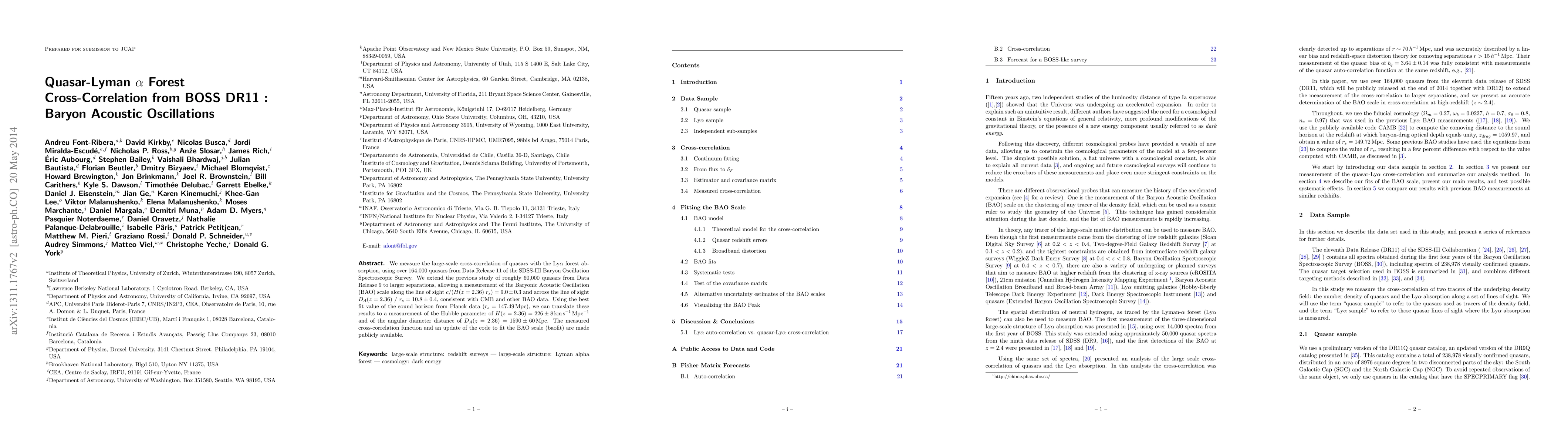 We measure the large-scale cross-correlation of quasars with the Lyman alpha forest absorption, using over 164,000 quasars from Data Release 11 of the SDSS-III Baryon Oscillation Spectroscopic Survey. We extend the previous study of roughly 60,000 quasars from Data Release 9 to larger separations, allowing a measurement of the Baryonic Acoustic Oscillation (BAO) scale along the line of sight $c/(H(z=2.36) ~ r_s) = 9.0 \pm 0.3$ and across the line of sight $D_A(z=2.36) / ~ r_s = 10.8 \pm 0.4$, consistent with CMB and other BAO data. Using the best fit value of the sound horizon from Planck data ($r_s=147.49 Mpc$), we can translate these results to a measurement of the Hubble parameter of $H(z=2.36) = 226 \pm 8 km/s / Mpc$ and of the angular diameter distance of $D_A(z=2.36) = 1590 \pm 60 Mpc$. The measured cross-correlation function and an update of the code to fit the BAO scale (baofit) are made publicly available.