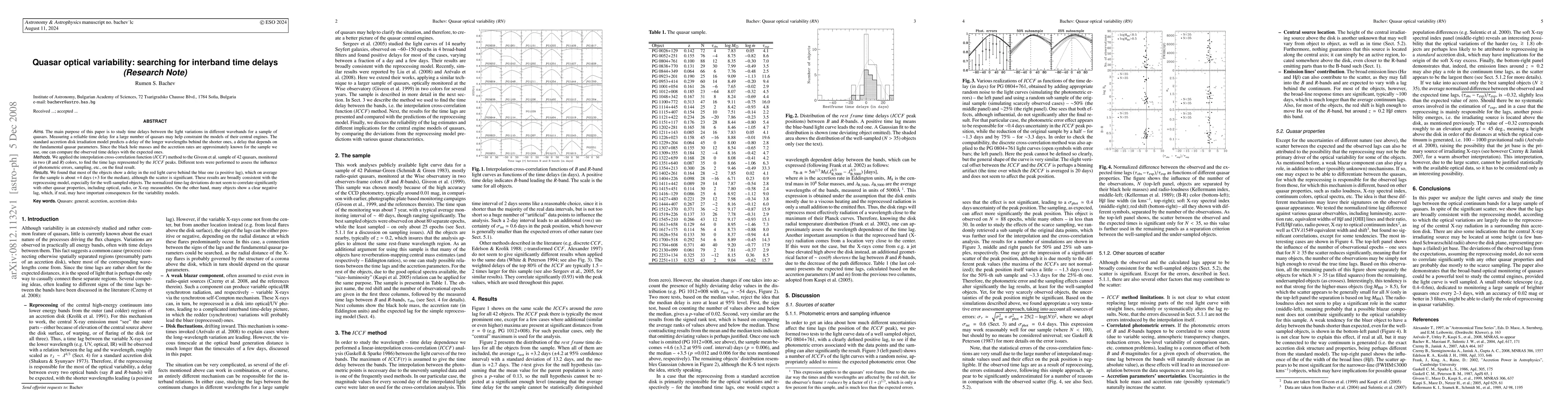 This paper investigates time delays between optical light variations in different wavebands for a sample of 42 quasars, finding a positive lag consistent with the standard accretion disk irradiation model. However, some quasars exhibit negative lags, suggesting potential complications for current variability models.