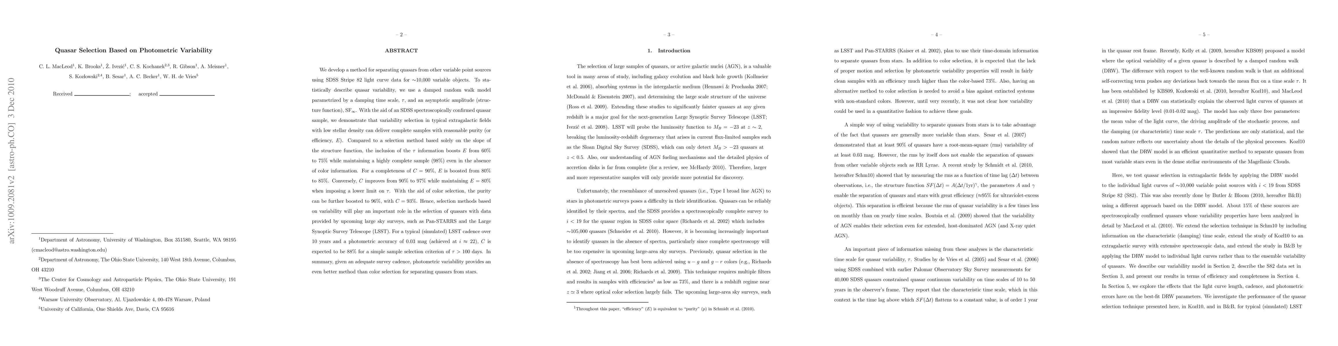 This paper develops a method to distinguish quasars from other variable point sources using SDSS Stripe 82 light curve data, showing that variability selection, especially with damping time scale information, significantly improves efficiency and completeness in quasar identification. The method is projected to be highly effective for future large sky surveys like LSST.
