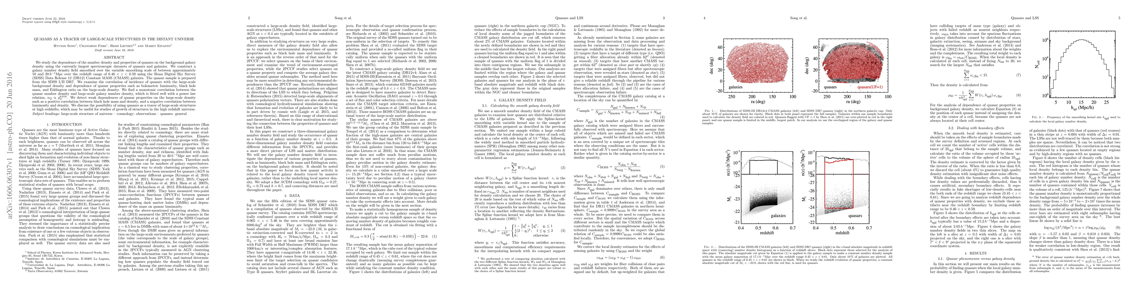 datasets of quasars and galaxies. We construct a galaxy number density field