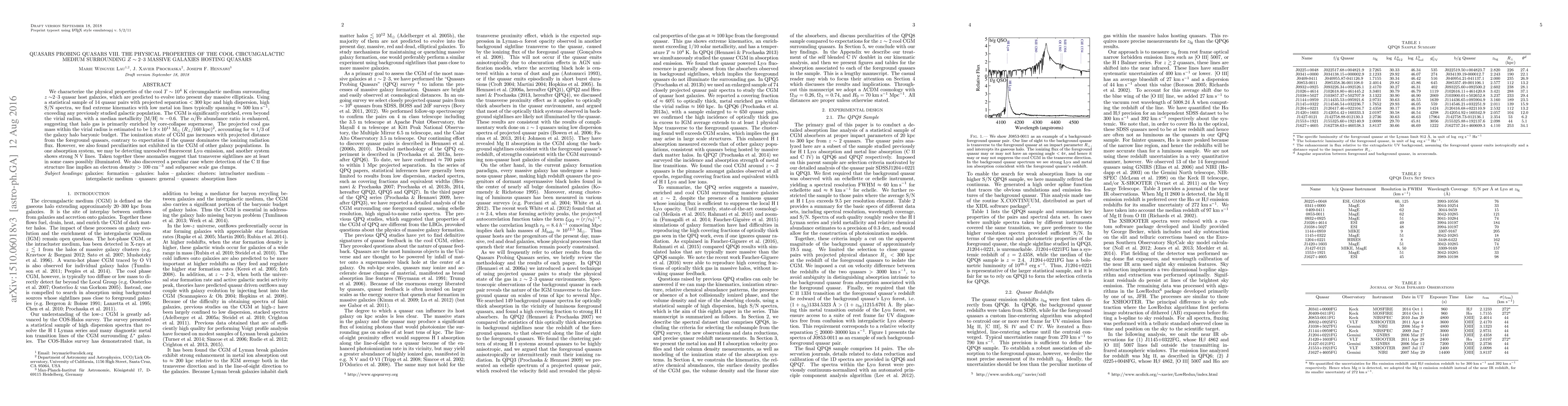 This paper investigates the cool circumgalactic medium (CGM) around z ~2-3 quasar host galaxies, finding enriched, kinematically extreme gas with a median metallicity of [M/H] ~ -0.6. The CGM's ionization state increases with distance from the quasars, suggesting other sources may contribute to ionization, and peculiar features like unresolved Ly-alpha emission and strong NV lines hint at unique illumination conditions.
