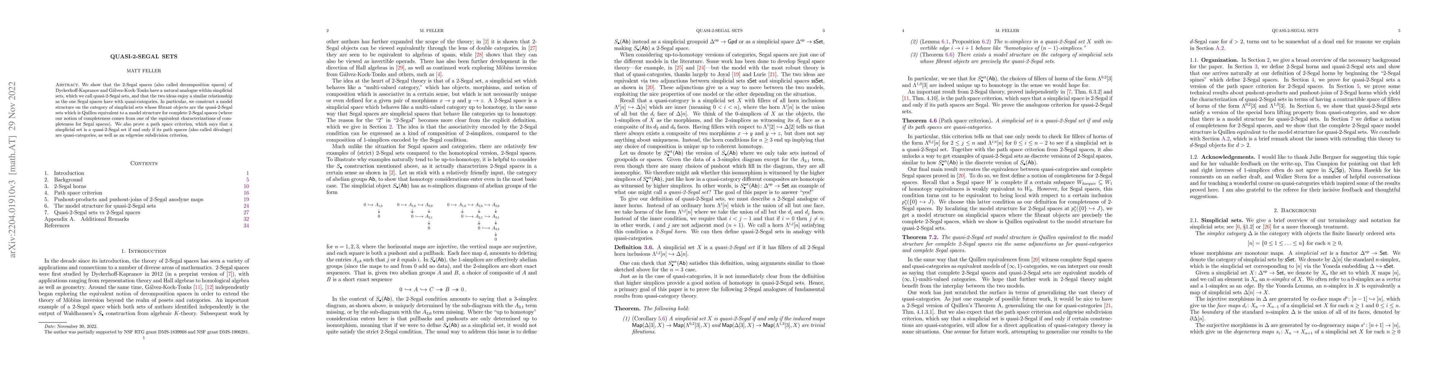 The paper introduces quasi-2-Segal sets as a simplicial analogue of 2-Segal spaces, establishing a model structure on simplicial sets whose fibrant objects match these quasi-2-Segal sets. It also provides criteria for determining when a simplicial set is a quasi-2-Segal set based on its path spaces and subdivisions.