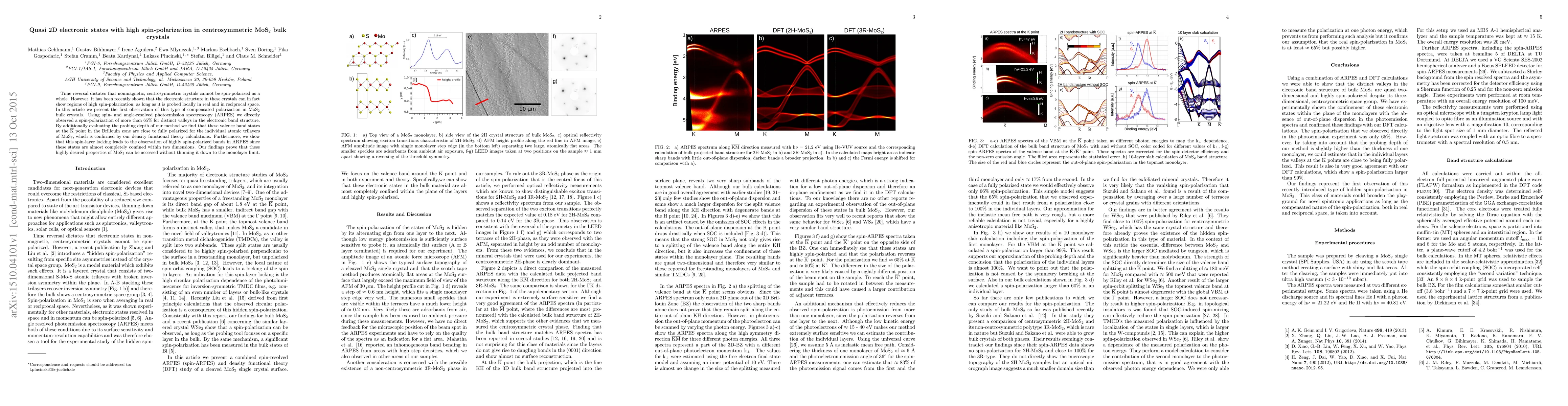 Time reversal dictates that nonmagnetic, centrosymmetric crystals cannot be spin-polarized as a whole. However, it has been recently shown that the electronic structure in these crystals can in fact show regions of high spin-polarization, as long as it is probed locally in real and in reciprocal space. In this article we present the first observation of this type of compensated polarization in MoS$_2$ bulk crystals. Using spin- and angle-resolved photoemission spectroscopy (ARPES) we directly observed a spin-polarization of more than 65% for distinct valleys in the electronic band structure. By additionally evaluating the probing depth of our method we find that these valence band states at the $\overline{\text{K}}$ point in the Brillouin zone are close to fully polarized for the individual atomic trilayers of MoS$_2$, which is confirmed by our density functional theory calculations. Furthermore, we show that this spin-layer locking leads to the observation of highly spin-polarized bands in ARPES since these states are almost completely confined within two dimensions. Our findings prove that these highly desired properties of MoS$_2$ can be accessed without thinning it down to the monolayer limit.