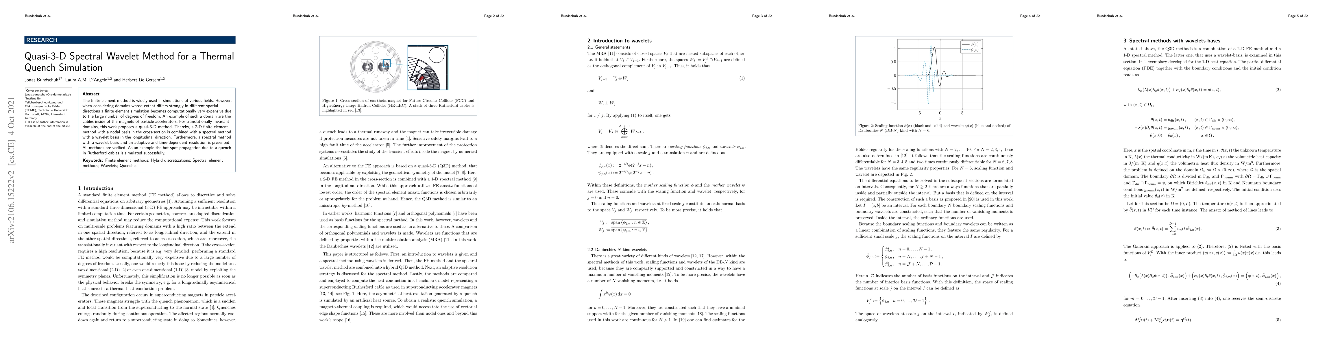 This paper proposes a quasi-3-D spectral wavelet method to efficiently simulate thermal quenches in particle accelerator magnets, combining 2-D finite elements with spectral wavelet methods for translational invariance and adaptive resolution. The method successfully simulates hot-spot propagation in Rutherford cables.