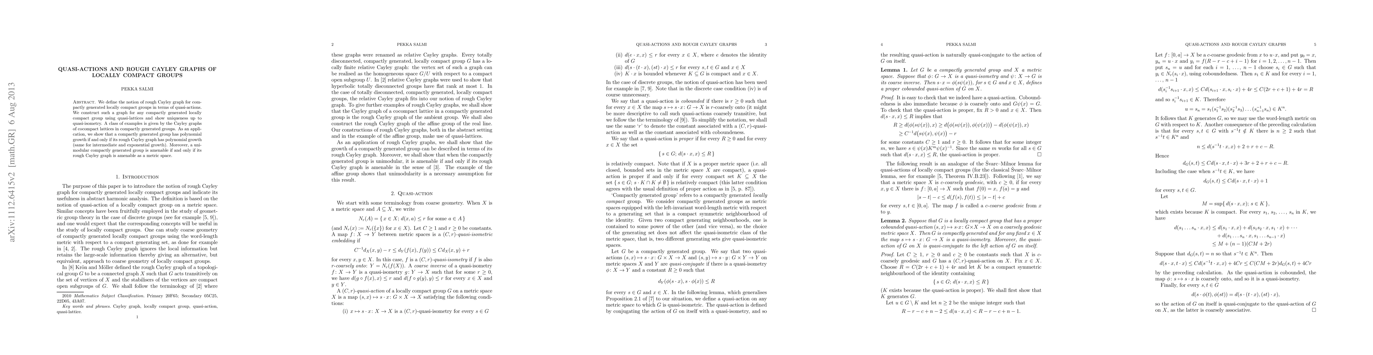 We define the notion of rough Cayley graph for compactly generated locally compact groups in terms of quasi-actions. We construct such a graph for any compactly generated locally compact group using quasi-lattices and show uniqueness up to quasi-isometry. A class of examples is given by the Cayley graphs of cocompact lattices in compactly generated groups. As an application, we show that a compactly generated group has polynomial growth if and only if its rough Cayley graph has polynomial growth (same for intermediate and exponential growth). Moreover, a unimodular compactly generated group is amenable if and only if its rough Cayley graph is amenable as a metric space.