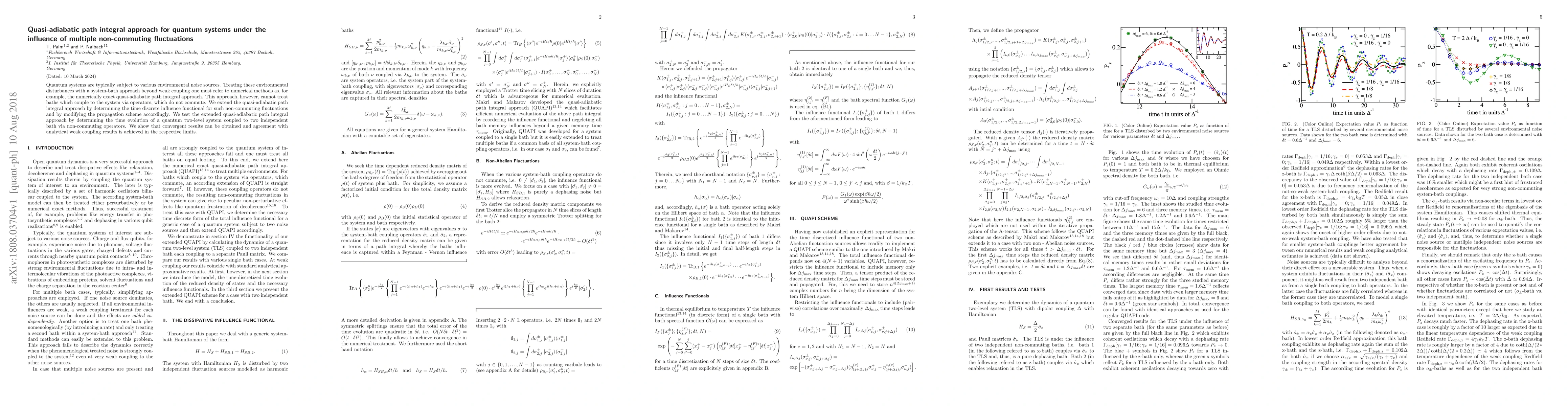 This paper extends the quasi-adiabatic path integral approach to handle quantum systems influenced by non-commuting environmental fluctuations, demonstrating its application to a two-level system coupled to two independent baths. The results show convergence and align with analytical weak coupling solutions.