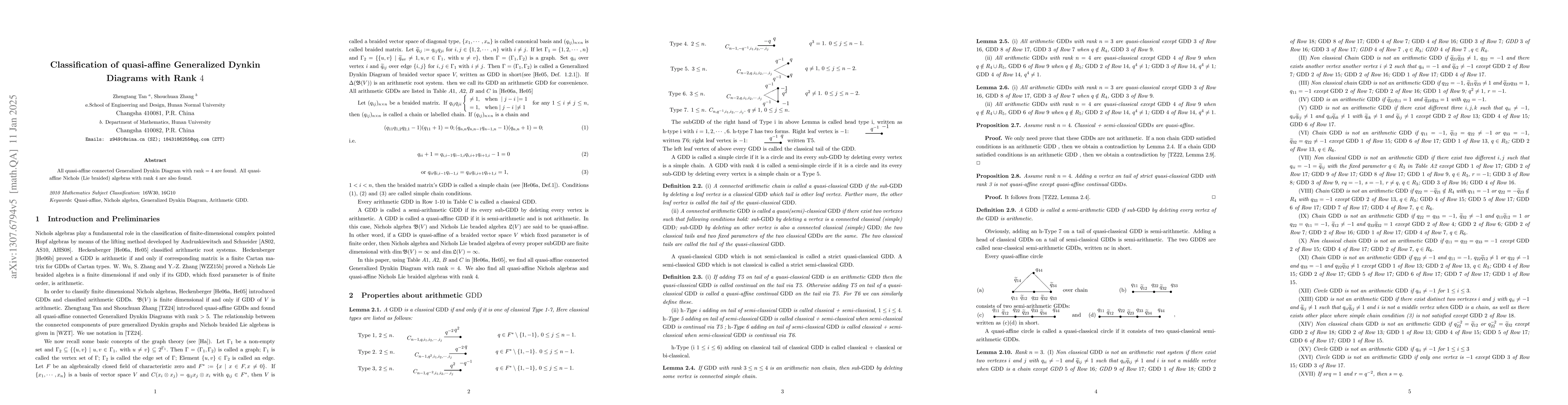 All quasi-affine connected Generalized Dynkin Diagram with rank $= 4$ are found. All quasi-affine Nichols (Lie braided) algebras with rank $ 4$ are also found.