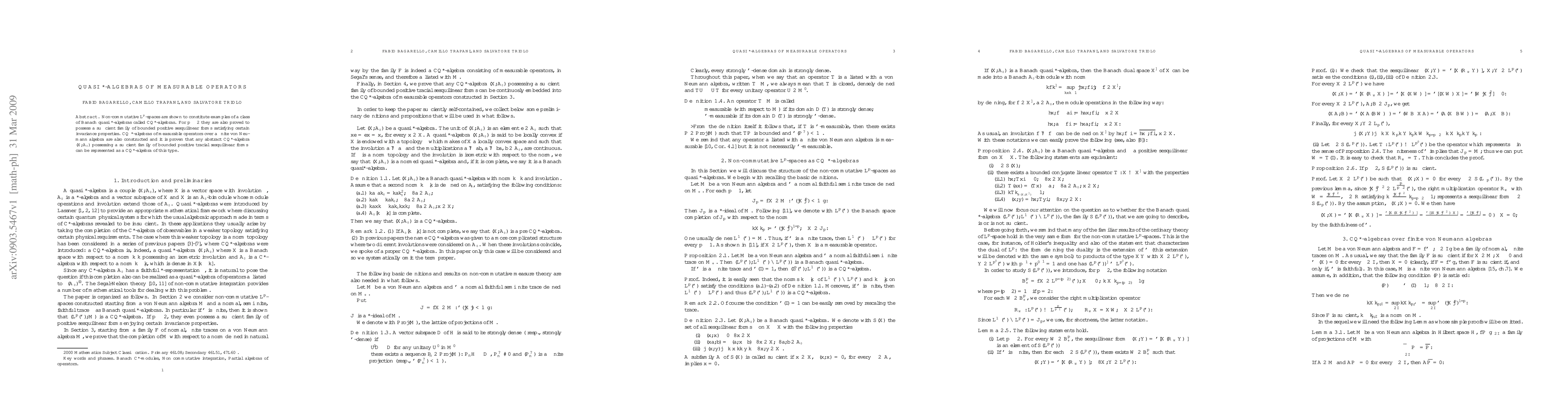 This paper demonstrates that non-commutative $L^p$-spaces form Banach quasi *-algebras (CQ*-algebras) and shows they possess a sufficient family of bounded positive sesquilinear forms with invariance properties. It also constructs CQ*-algebras of measurable operators over a finite von Neumann algebra and proves that any abstract CQ*-algebra with a sufficient family of bounded positive tracial sesquilinear forms can be represented as such a constructed algebra.