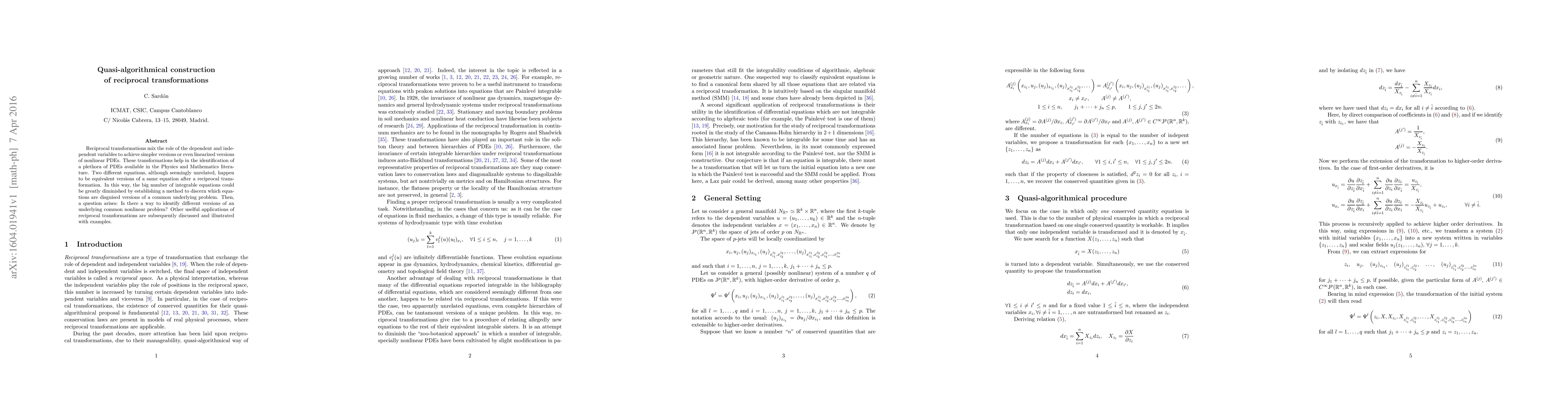 Researchers develop a method to identify equivalent versions of nonlinear partial differential equations (PDEs) through reciprocal transformations, aiming to reduce the number of integrable equations and discover common underlying problems.
