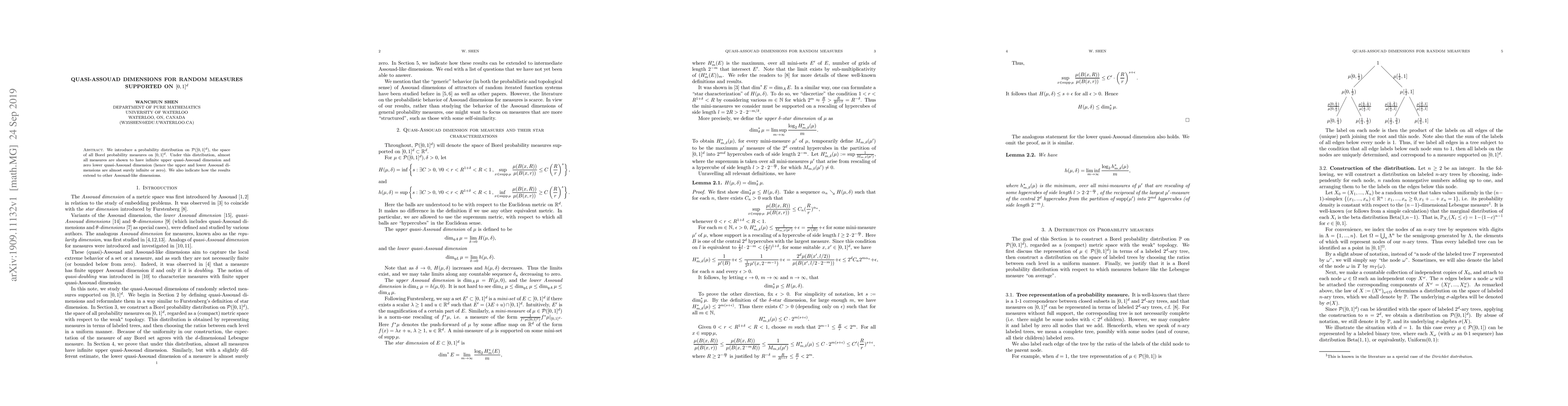 We introduce a probability distribution on $\mathcal{P}([0,1]^d)$, the space of all Borel probability measures on $[0,1]^d$. Under this distribution, almost all measures are shown to have infinite upper quasi-Assouad dimension and zero lower quasi-Assouad dimension (hence the upper and lower Assouad dimensions are almost surely infinite or zero). We also indicate how the results extend to other Assouad-like dimensions.